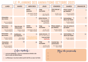 Comme chaque mois, notre établissement propose des ateliers et animations différentes.